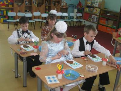 Воспитатель: Вы славно поработали сегодня. Скажите, ребята, у вас получилось передать в открытке весеннее настроение, праздничное?
